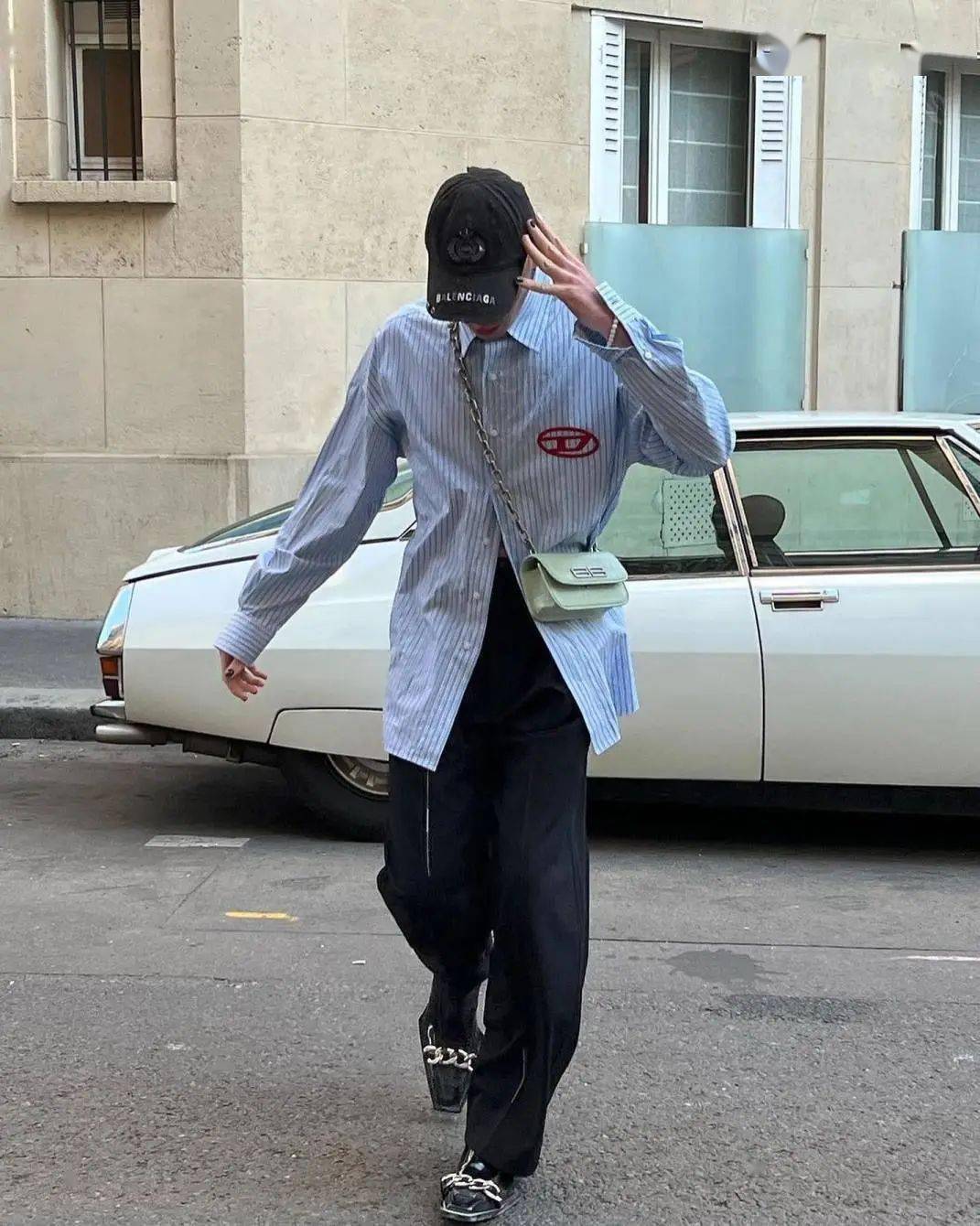 巫师靴驾驭的难度较高,很考究玩家整个造型的搭配逻辑,Mino分别上脚过漆皮+链条点缀的Canape以及设计略显低调的Cognac。他通过出彩的Monogram印花,压制住出挑的靴款,让整个造型更为平衡。
