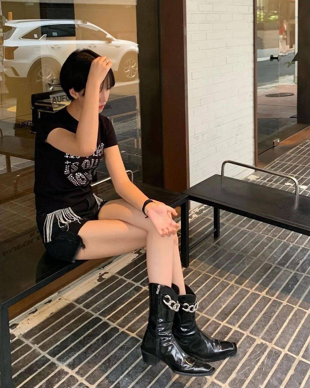 关于靴款的搭配技巧,观察社媒玩家的穿搭造型,我们也总结出一些不容出错的穿搭公式。最为简单的方式,便是通过短裤、短裙来突出这些靴款。