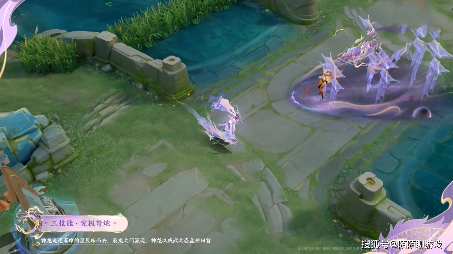 技能特效设计:漫天星辰之下,她以神龙为伴,伴随着昼夜更替,她的武器亦呈现出双重形态的切换,昼龙现世,金光璀璨,夜龙伏出,紫气磅礴: