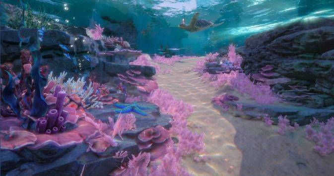 随着新职业鲛人“吟潮”的来袭,南海的新地图也是拉开序幕,水面之上岛屿林立,在海浪与阳光的辉映下,透露着无限的神秘,分层光照、海底焦散营造出栩栩如生的荧光海,引人入胜。水下也暗藏玄机,一头扎入海底,可以看到浪漫的瑰丽珊瑚群、游动着的小鱼、升腾的泡泡,仿佛置身于一个梦幻的海底仙宫。好看的风景让人的颜值也更上几分,波光射入海底,鲛人游在丁达尔光照期间,如童话走出来的人鱼公主,无论从那一个角度去拍摄,都非常漂亮。如此出图的海底,捞上朋友去记录美好生活再合适不过。