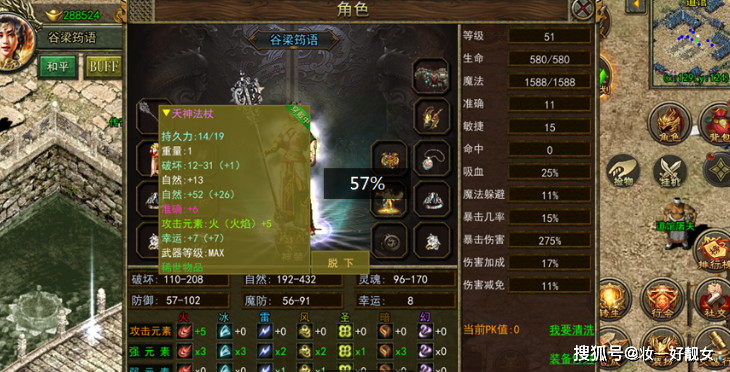 战士:操作是比较简单的,前期很氪,一把65武器+一身震天装就可以玩很长时间了,开了祈祷套的战士砍人是真的爽,战士的命中一定要上22或者23,命中可以通过洗炼武器获得。