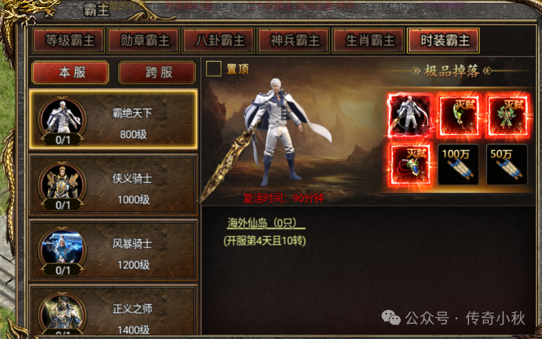 时装BOSS都在一张地图里,那就是【海外仙岛】,时装boss还分本服和跨服两部分,跨服因为有其他玩家,刚开始竞争肯定非常强烈的,本区的时装资源可以合区里小伙伴们分配分配!
