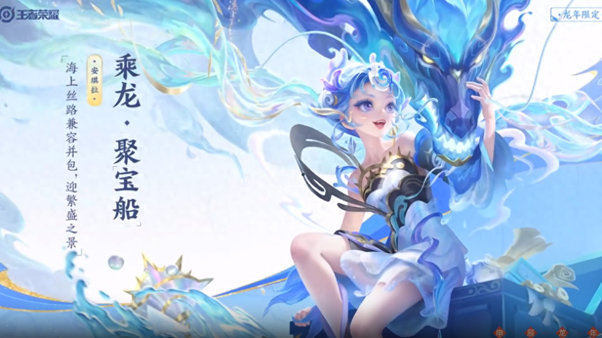 安琪拉作为丝绸之路的见证人,成功获得了龙年限定皮肤的资格,整个人物的建模比较可爱,和大乔一样,穿着打扮比较中式。当官方公布了安琪拉皮肤的特效后,她直接上了热搜。别的英雄龙年限定皮肤都被夸帅气,安琪拉的皮肤则被夸好玩。她的大招特效太好玩了,一个超大的龙头吐出圆圆的水柱,她的大招完全可以改名为水龙吟,相当霸气。