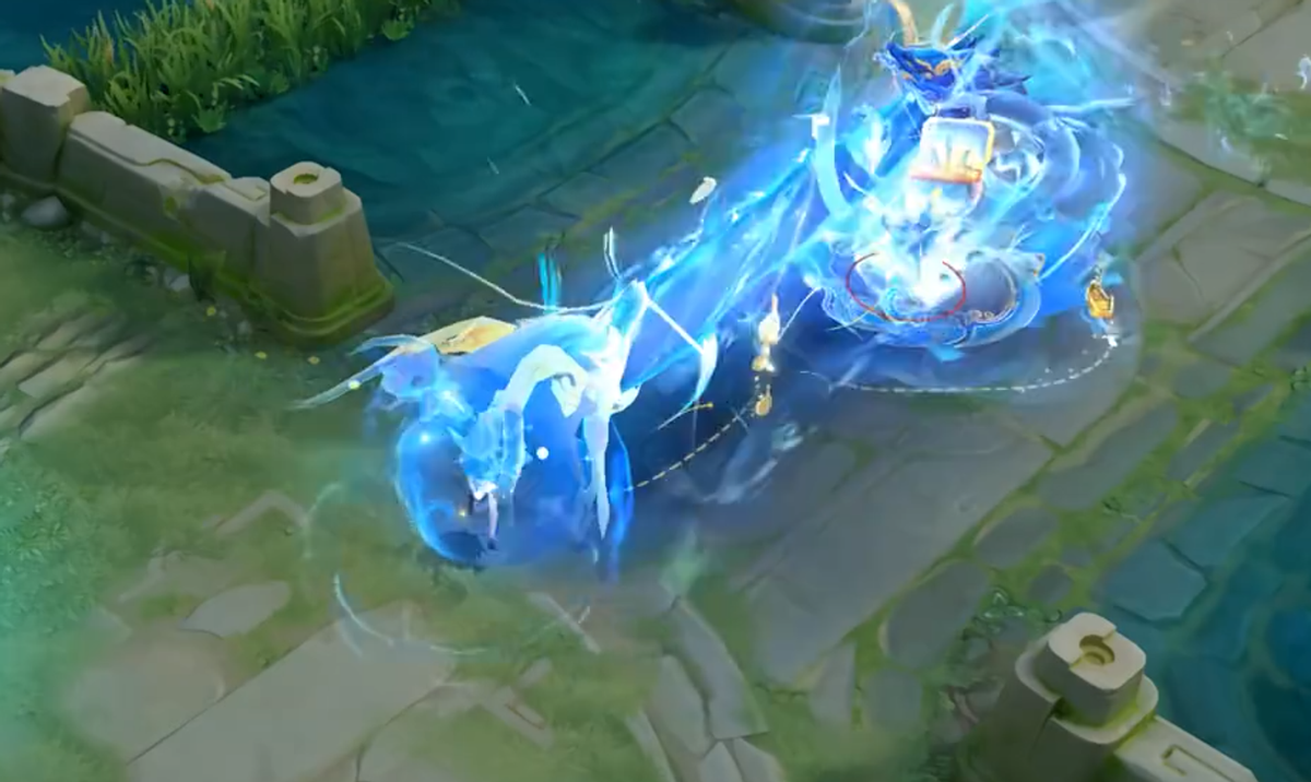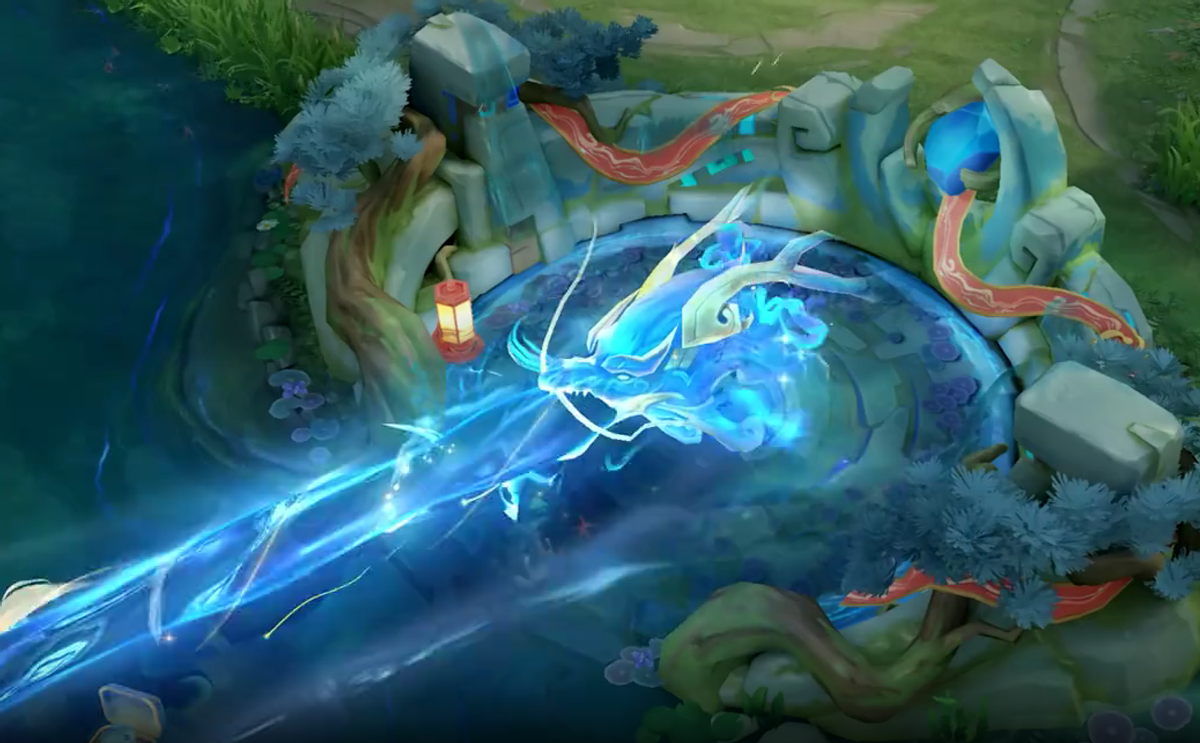 安琪拉之所以登上热搜,一切要归功于她的技能特效。普通攻击是水球,还有水花的拖尾,一技能水球交错释放,伴随着水元素的特效,手感特别好。二技能会出现金色的宝船环绕航行,展现了丝绸之路海贸丰盈。大招神龙咆哮,水柱喷涌,龙头是蓝色,类似于冰块,由于龙头比较大,安琪拉完全被龙头覆盖,画面中就留下一个龙头喷洒水柱的画面,相当好玩。