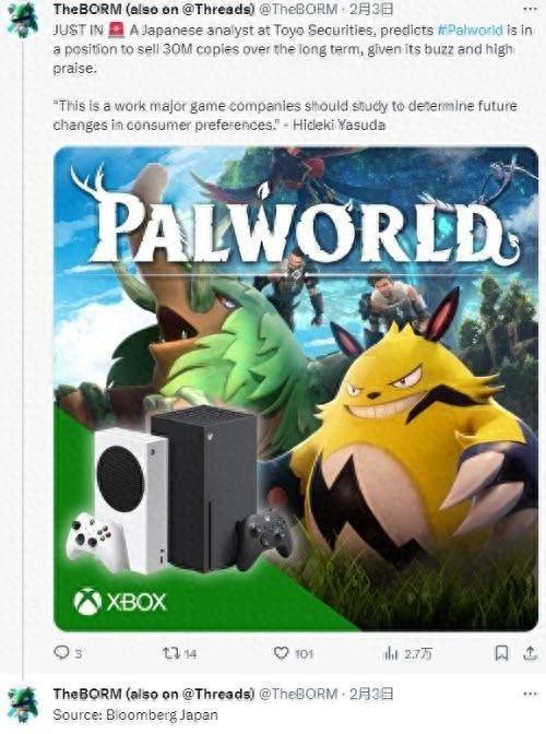 原标题:分析师预测:《幻兽帕鲁》销量能到3000万