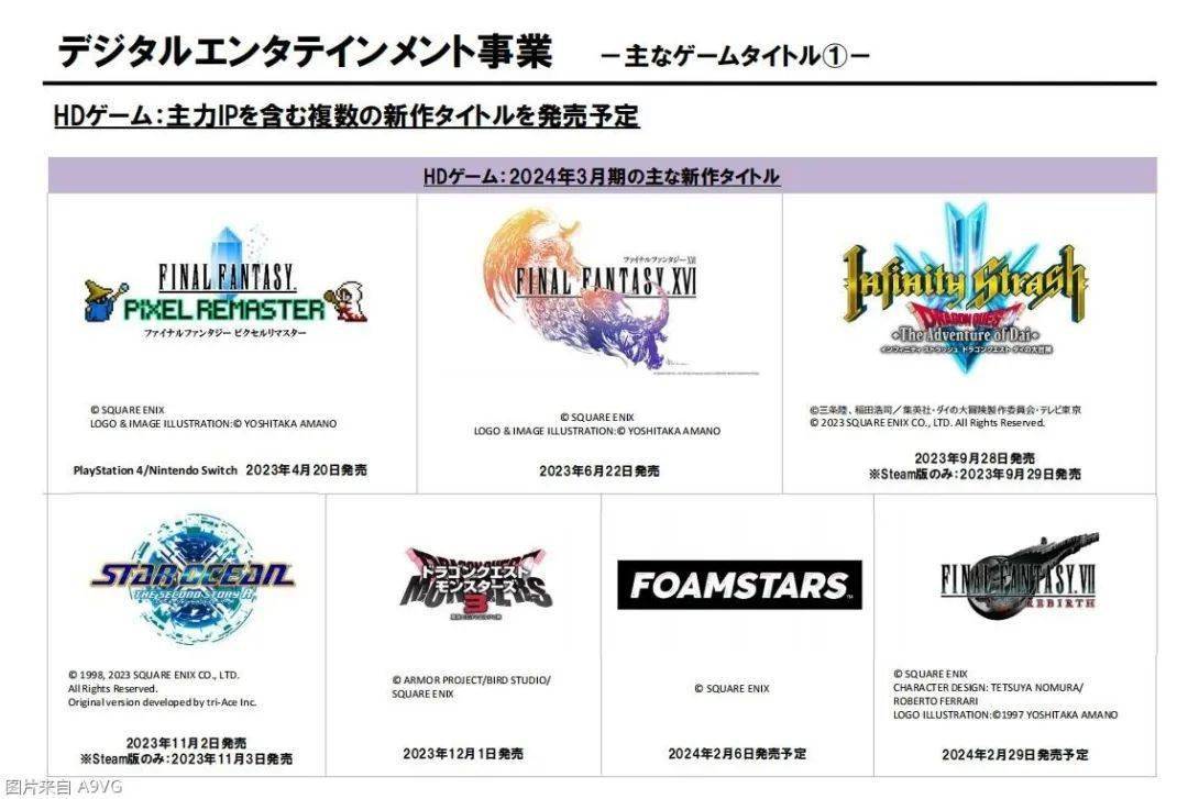 其中以游戏为主的数字娱乐业务具体数字:销售额1796.54亿日元,同比减少2.6%,营业利润307.15亿日元,同比减少20.7%。截至12月底该财年推出《最终幻想16》《最终幻想1-6 像素复刻版》《勇者斗恶龙怪兽篇3 魔族王子与精灵之旅》等新作,为提升销售额做出贡献。