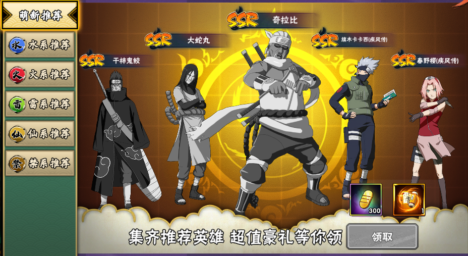 对于前期的新手玩家,这里有一个简单又实用的阵容推荐:干柿鬼鲛+大蛇丸+奇拉比+旗木卡卡西(疾风传)+春野樱(疾风传)。这个阵容以debuff增伤为核心,通过干柿鬼鲛的保护和持续施加的凝霜效果,配合大蛇丸的增伤能力,以及奇拉比的禁疗和卡卡西的禁怒,最后加上小樱的灼烧效果,形成了一套完美的控制和输出体系。
