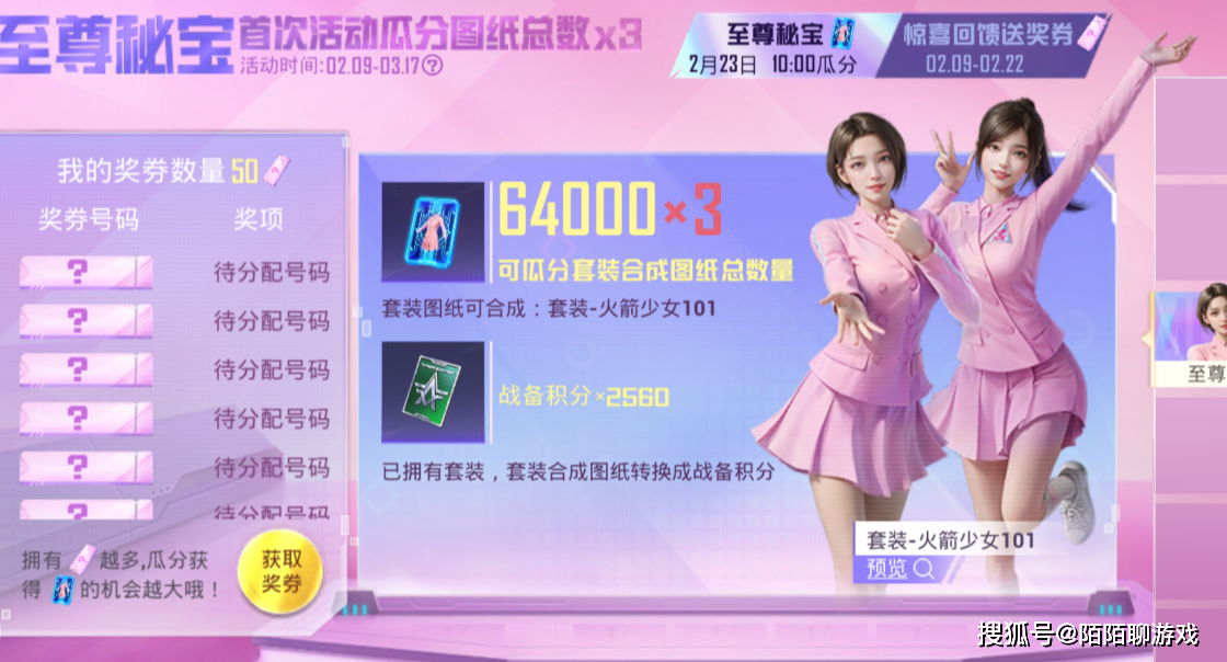 值得一提的是,想要获得这套时装,玩家需要充值9888点券,获得幸运奖券一张,最多可以领取20张,待返场时参与火箭少女101套装的抽奖。这也就意味着玩家想要获得这套时装需要花费2万元拿抽奖券,还不一定能获得,这概率确实有些让非洲人望而却步。