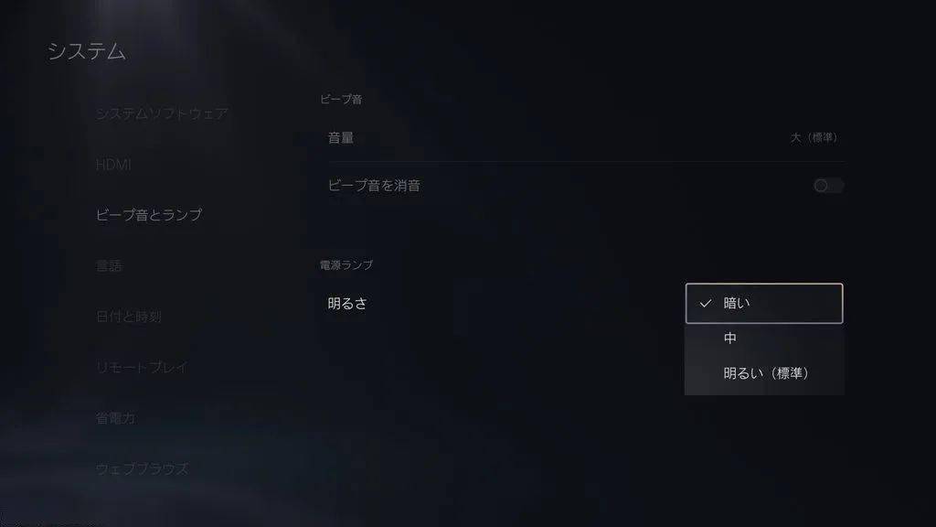 PS5主机电源灯亮度调节:可以调整PS5主机电源灯的亮度。
