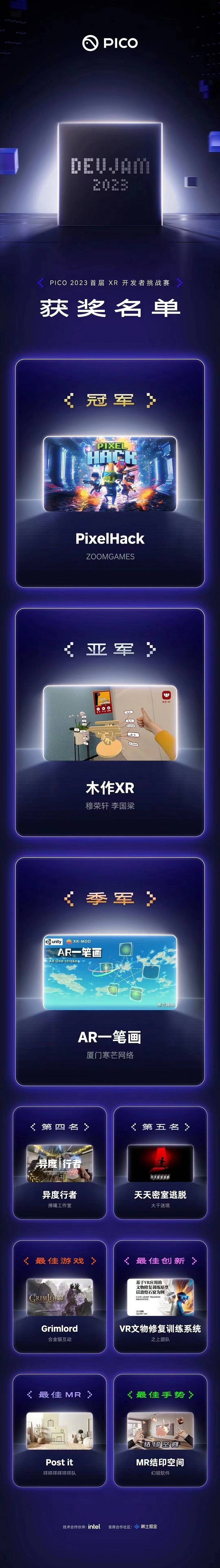 PICO 2023首届XR开发者挑战赛获奖名单公布,来自ZOOMGAMES的PixelHack获得冠军!