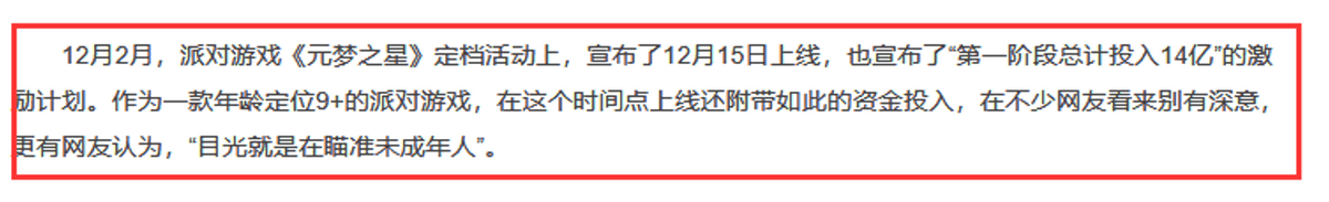 首先文章开头就令人啼笑皆非,这里说元梦9岁就能玩,目光是在瞄准未成年人,可有些厂商推出的我的世界、猫和老鼠、光遇、蛋仔派对都是8岁就能玩的游戏,看来后面这些游戏都在瞄准未成年人。