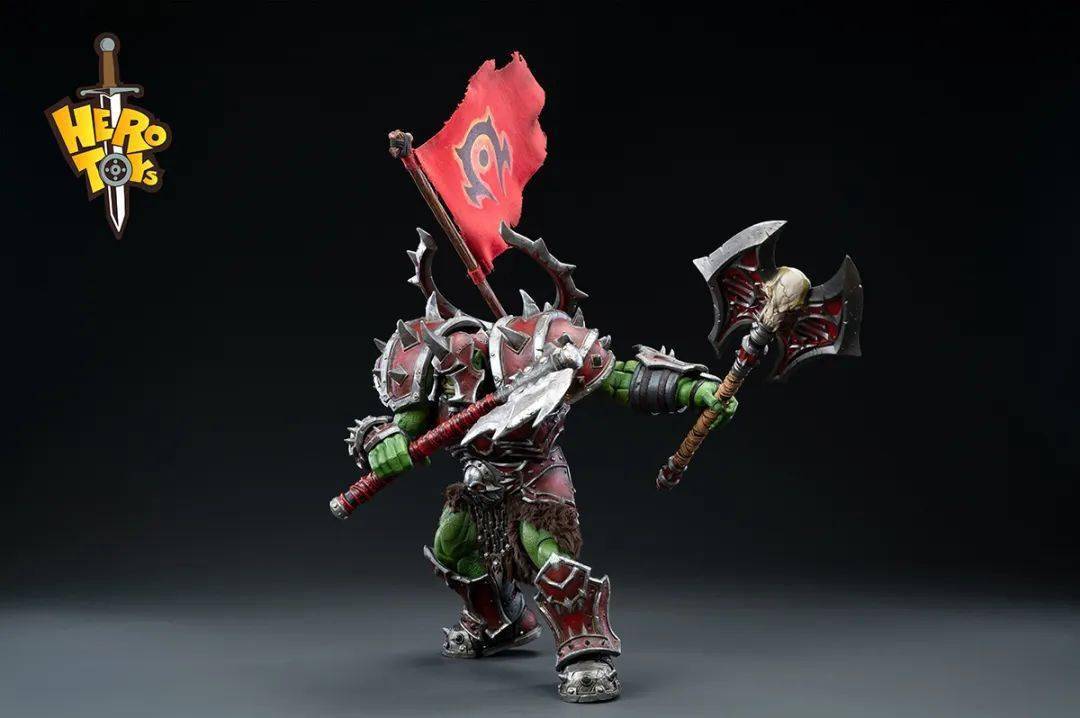武器配件包括两把战斧、一面圆形盾牌还有一枚红色旗帜,一切都是为了部落