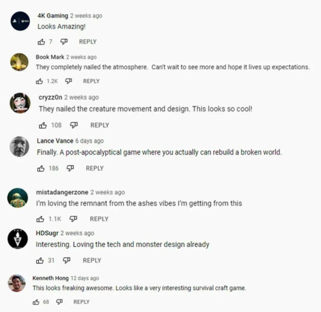 如今,它放出的二测PV,也在一天之内就收获了220万播放。一些此前参与过测试的玩家都在评论区表示,PV展现出来的内容不是画饼,而是早已可以玩到,所见即所得。有的玩家还戏称游戏PV诈骗,“实机画面明明比PV更好。”不少初次见到《七日世界》的玩家,也被PV展现出的内容所吸引,表示“出必玩”。