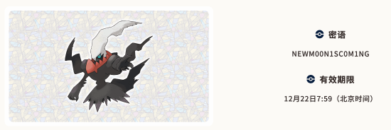 让幻之宝可梦“达克莱伊”成为你的伙伴吧!密语 NEWM00N1SC0M1NG