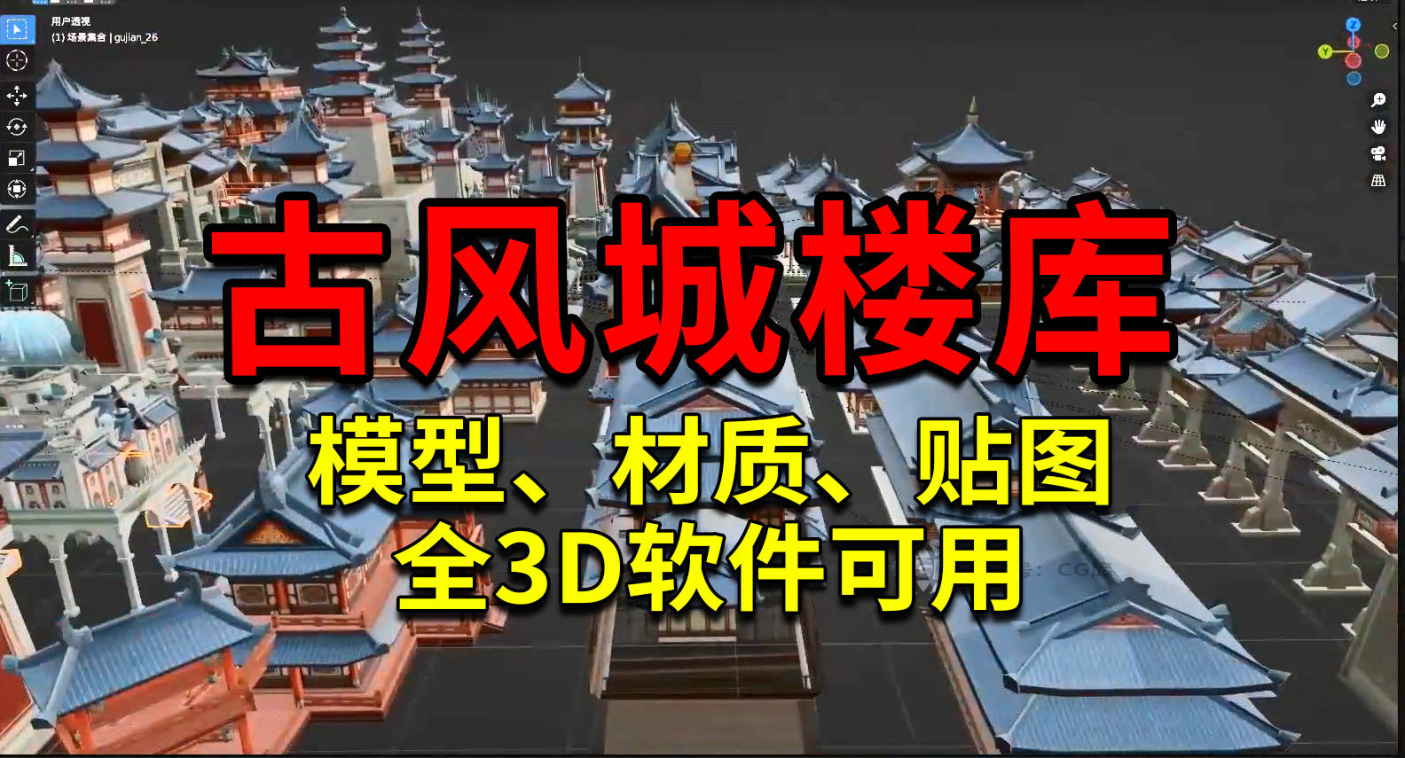 原标题:古风国风主题城楼建筑模型库下载,全3D可用