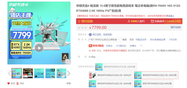 毕竟它可提供着以7799元的限时价格收获到像AMD R9-7940H + 140W满血RTX4060的配置表现,处理器或是独显方面的规格都十分到位,共同为《黑神话:悟空》等等优质游戏大作提供高性能输出支撑,开启DLSS 3功能之后更是能大幅提升着游戏画面的帧率。此外,它还搭载着2.5K 165Hz广色域屏,清晰度、流畅度或是色彩方面都有不俗保障,实现流畅且真实的游戏画面,这比起组一套“RTX4060主机+2K高刷屏”方案确实要方便高效多了。