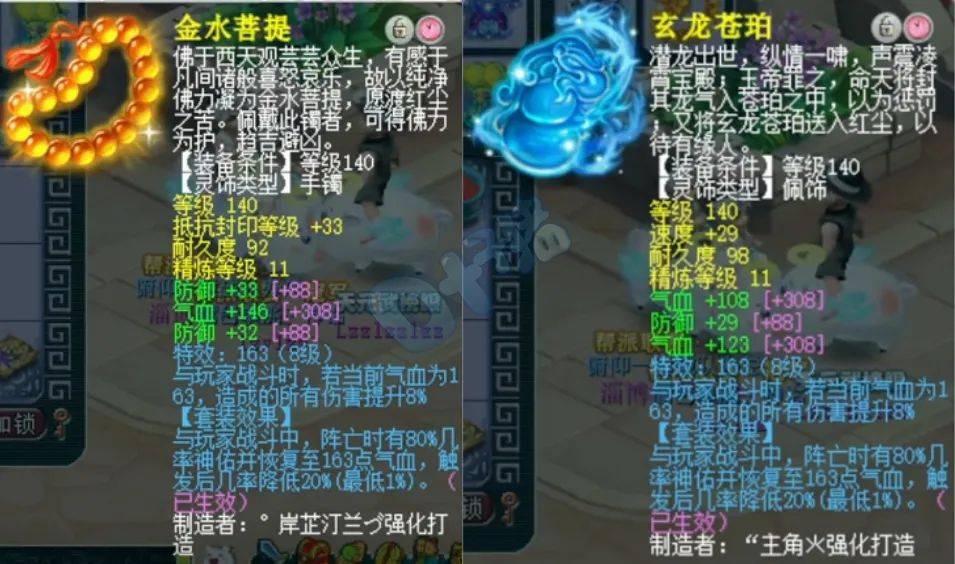 手镯抗封33爆5,下排防御共65爆9、气血146爆48