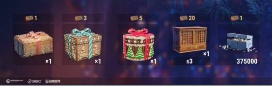 12.11版本更新以后,玩家按照战斗表现可获得相对应的奖励,例如使用VIII级和IX级战舰作战会得到钢铁资源;X级战舰的战斗奖励则是节日礼券,玩家使用不同数量的礼券,就可以在军械库里兑换各种不同规格的“圣诞老人的礼物”补给箱。