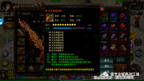 装备获取:通过激战boss里边的各个类型的boss来获得装备。