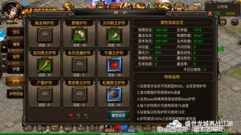 其次就是野外boss,这个比较简单随便就杀了,杀野外boss可以获得护符在神炉里边增加战斗力。