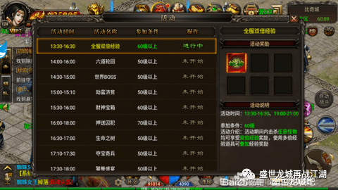 这里开始就讲跟着公会兄弟一起做的活动月黑风高,杀人越货激情的时候到了,都是一些定点的活动。能做跟着公会兄弟做做,奖励也比较丰厚,元宝经验装备等等。。。。
