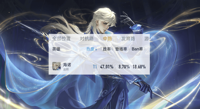 海诺上线也有一周多的时间,足够大家了解熟悉他,铭文出装打法已经成熟,可英雄的数据却止步不前,甚至还有下跌。营地数据显示,海诺在所有段位热度变成T1,出场率不足9%,胜率也定格在47%附近。巅峰赛的数据也不够理想,虽然维持住了T0的热度,但出场率也跌到了15%,胜率还是在47%附近,一直以来没有涨过。目前可以给海诺定性,他不是一个超标的法师。