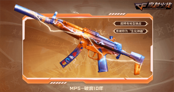 12月9日至15日期间,CFer参与游戏1局即可领取全新超稀有枪型换皮武器——MP5-破浪十年。曾被誉为“生化神器”的MP5搭配破浪系列专属外观设计,拥有极快射速和超强火力压制能力的“小蜜蜂”不容错过。