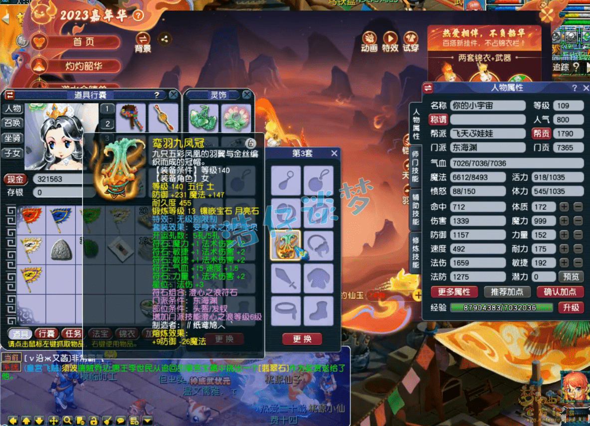 140级无级别葫芦宝贝套女头,打了13锻月亮石,这件装备是这个号的排面!