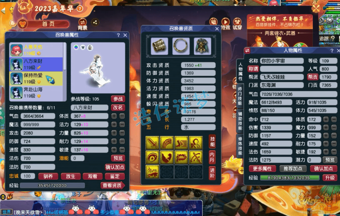 作为梦幻西游的首个奇遇门派,东海渊的角色浩仔展示得还是比较少的!在东海渊刚上线之初,想玩东海渊只能从0级开始升级,无法通过其他门派转入,所以阻挡了很多玩家的步伐!不过前段时间放出了好消息,东海渊可以从其他门派转入了,相信不久之后,会有更多玩家来体验东海渊这个门派!本篇文章浩仔要给大家带来的,就是一个109级东海渊的展示,目前东海渊等级上限就是109级,不知道以后会不会开放等级上限!话不多说,直接开始今天的展示!