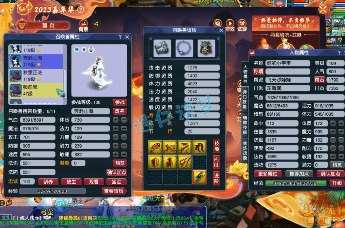 8技能法防配速血宠画魂,高内丹打的是电魂闪,单挑很好用的宝宝!