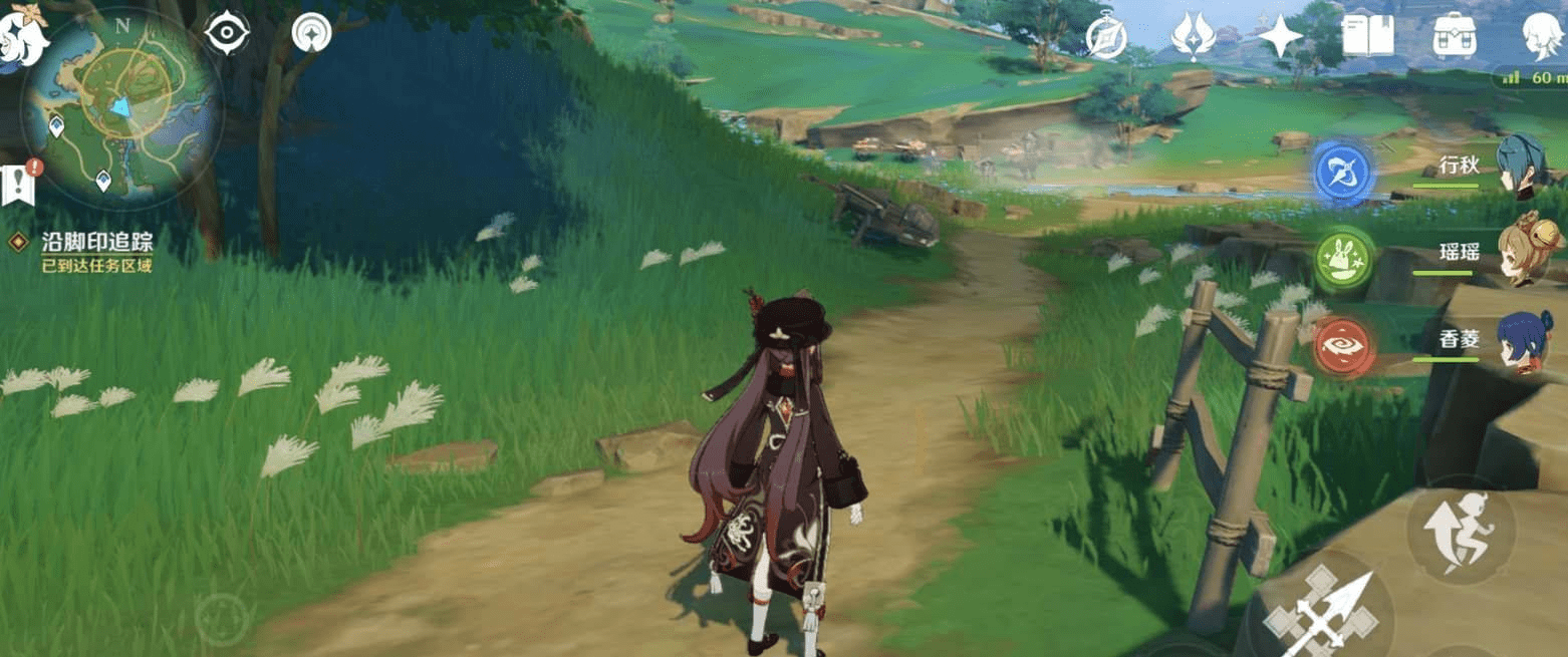 2、 在绀田村的传送点找到第一组脚印,顺着路线北行。