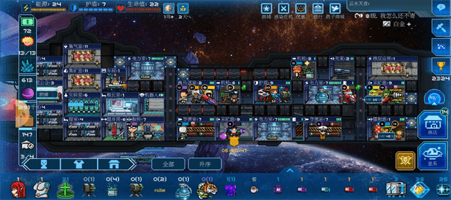 当然,为了延长游戏时间,游戏中利用等级这一要素来限制舱内容量。如果你想在星舰内装更多内容,体验更加丰富的组合,就必须提升等级。除此之外,玩家还可以在不同的区域放置不同的船员。他们往往拥有不同的能力,有的擅长维修,有的擅长操作武器。合理的人员分配,能够让星舰拥有更强的战斗力。这种融入了人员调配的玩法,确实有些模拟经营的味道。