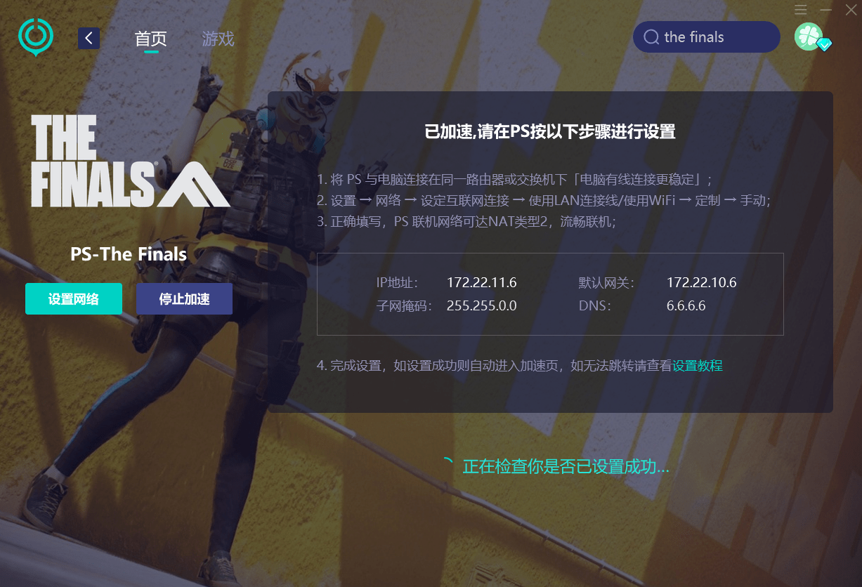 2.加-速后在PS或者XBOX设备上按步骤设置好网络即可获得稳定网络连接,畅玩thefinals最终决战