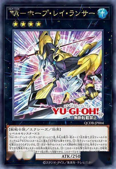 「FA-ホープ・レイ・ランサー(フルアーマード-ホープ・レイ・ランサー)」1回合1次,也能把手卡1张魔法·陷阱卡丢弃,在自己场上的4阶以下XYZ怪兽上面重叠来XYZ召唤。
