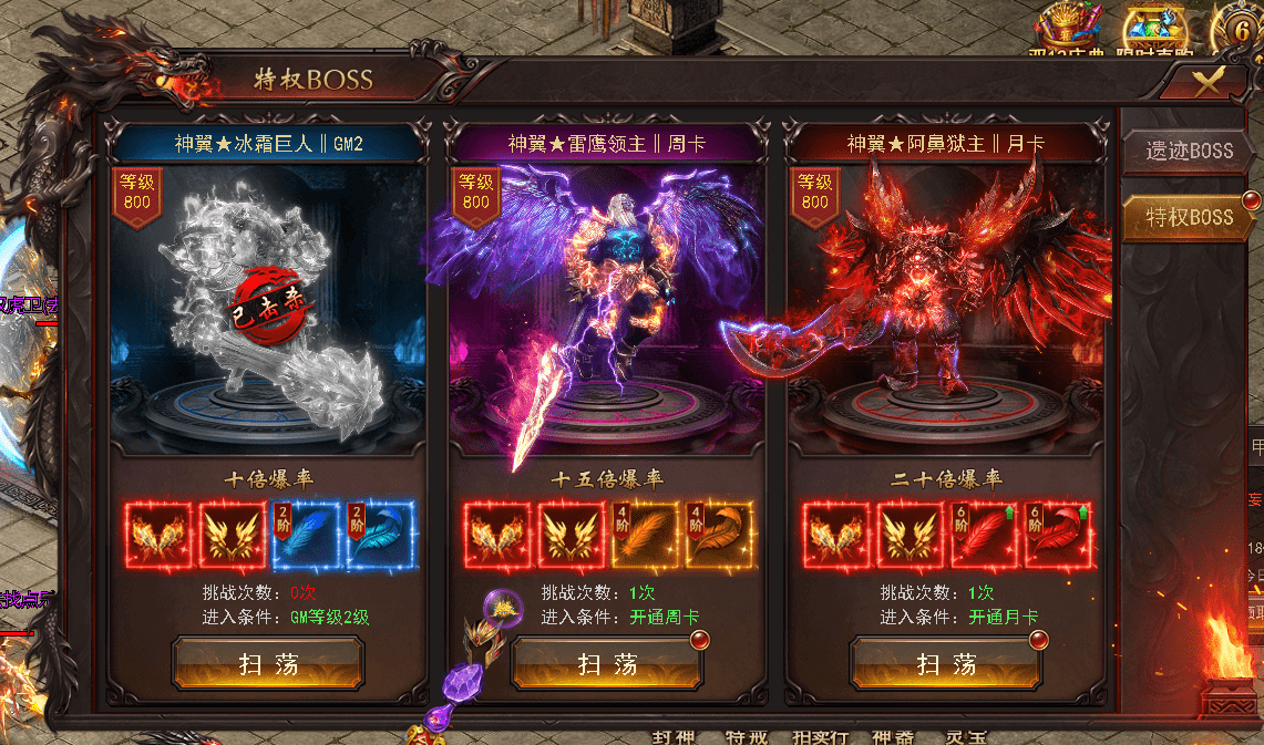 永久折扣 超高爆率 遗迹特权boss日常扫荡