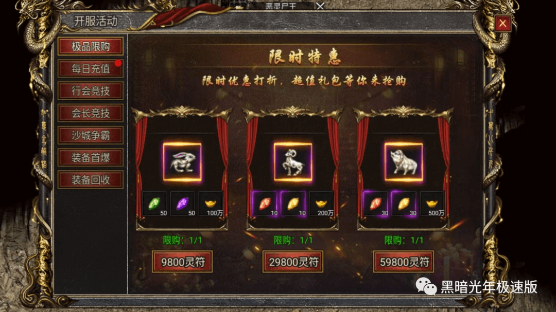 直购礼包是一个实用的选择,让你直接获取灵符,而且不仅仅是双倍,还有附赠的元宝。这个礼包的购买可以帮助你更经济地提高实力。在黑暗光年中,商城中的双倍灵符每30天才更新一次,因此活动期间的双倍直购尤为重要,不仅能增加实力,还能有效降低你的消费压力。