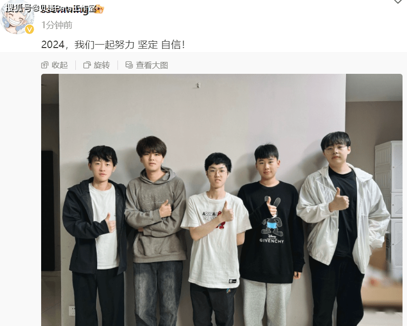 而ming本人也在RNG官宣后,发文表示2024年一起努力坚定自信!并且晒出了RNG明年新阵容的大合照。