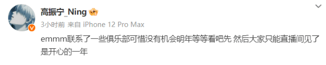 宁王说自己转会期联系了一些俱乐部,可惜没有机会,只能等明年再看看,后续会先直播。