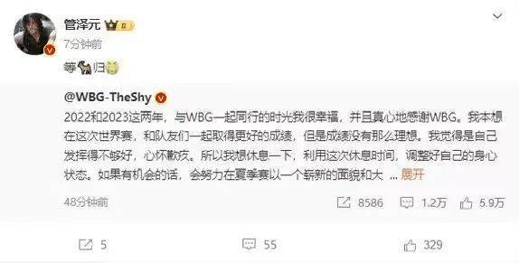这其中包含了自己在世界赛决赛上发挥不好的歉意,表达了自己新赛季想要休息的愿望,并且还感谢了WBG。当然了这不是退役公告,Theshy的原文仅仅是说自己春季赛休息。
