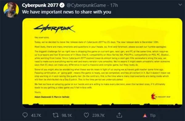 区别在于:CDPR是市值百亿的上市公司,有庞大的后续预算来做补救。在游戏上线之后的3年内能一直坚持迭代优化几十个版本,甚至在今年拿出了《往日之影》这种质量超越本体的DLC。