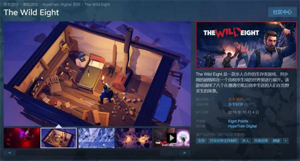 除去《Radiant One》,他们在Steam上线的第一个商业项目是《The Wild Eight》,一款多人合作生存游戏,由Hyper Train发行。