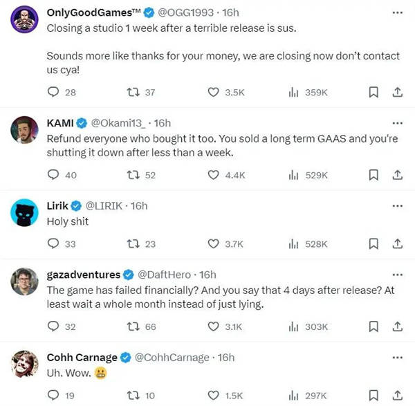 单人开发的《Lethal Company》正在畅销榜上大杀四方,另一匹大伙期盼已久、愿望单过百万的“黑马”也不甘寂寞,在多次跳票后终于横空出世——然后上线暴死,紧接着开发方跑路。