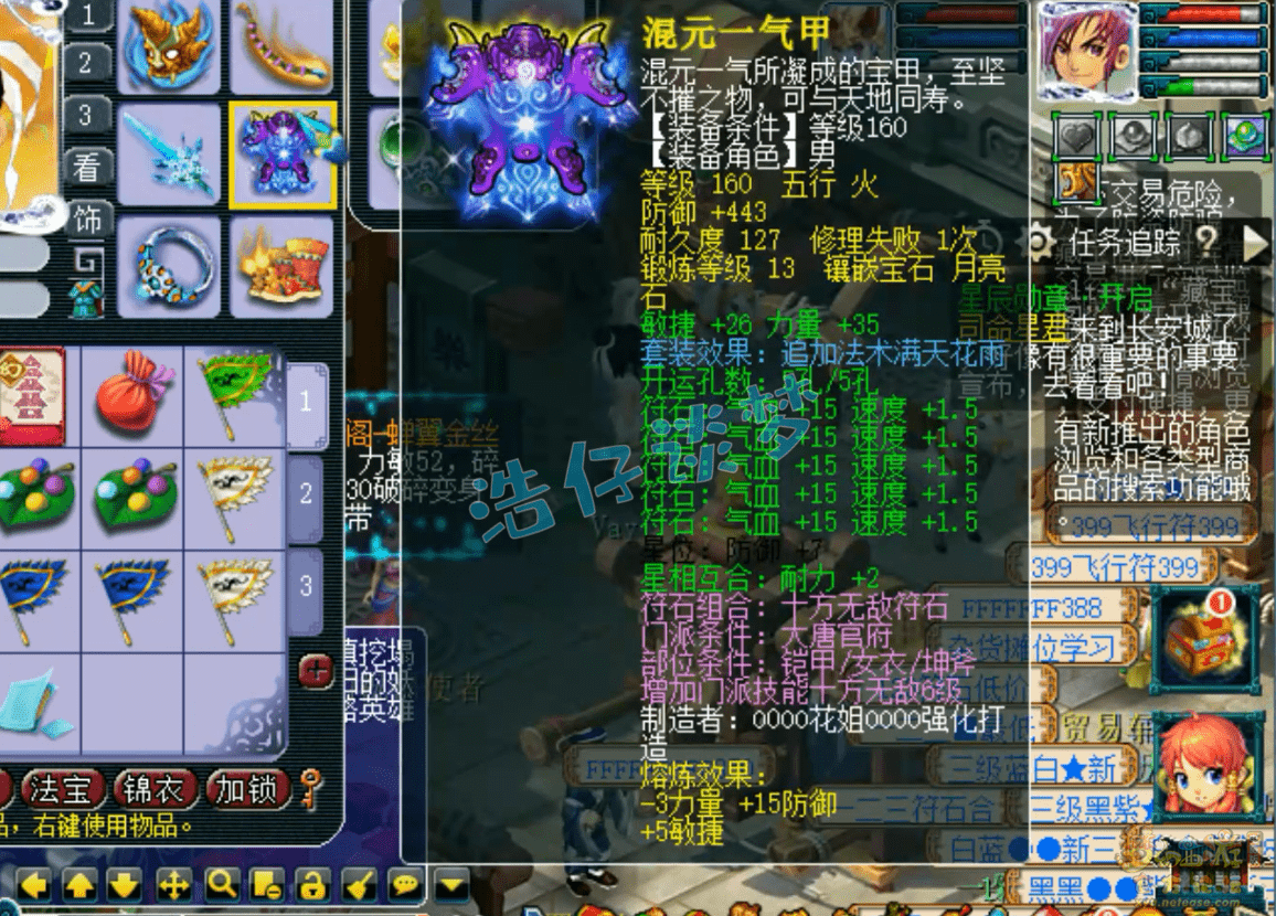 160级满天花雨套铠甲,熔炼后敏力双加63,打了13锻月亮石!
