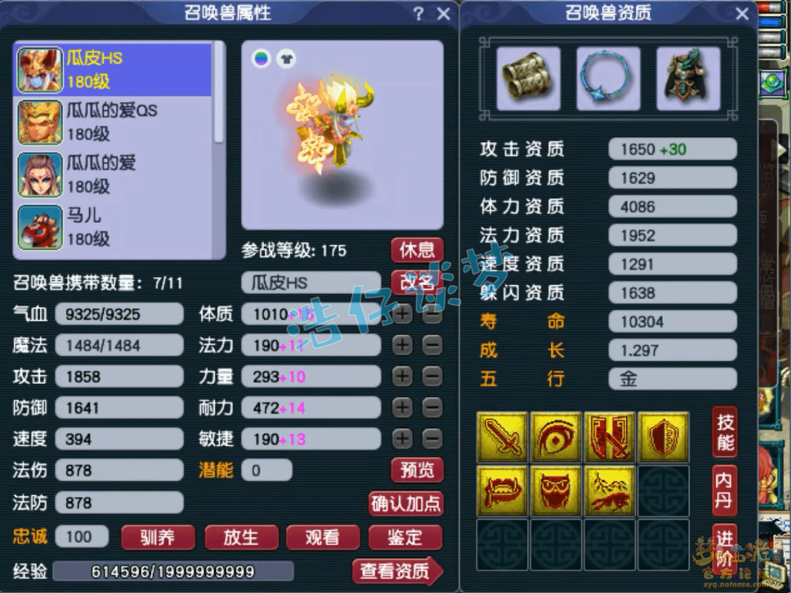 7技能观照万象谛听,资质还不错,可惜没有须弥,输出会有点欠缺!