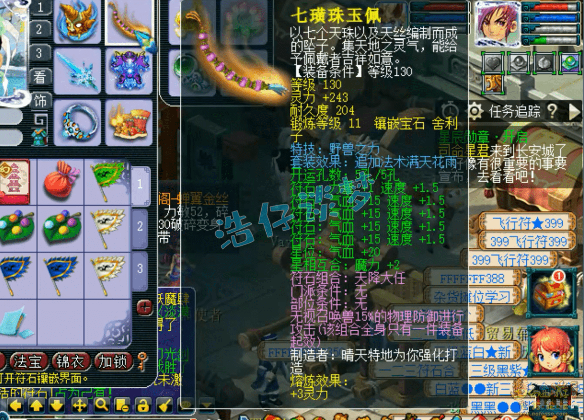 150级高伤专用武器,熔炼后单加力量36,打了13锻红玛瑙,可惜非方寸山使用-21命中,否则伤害会更高!