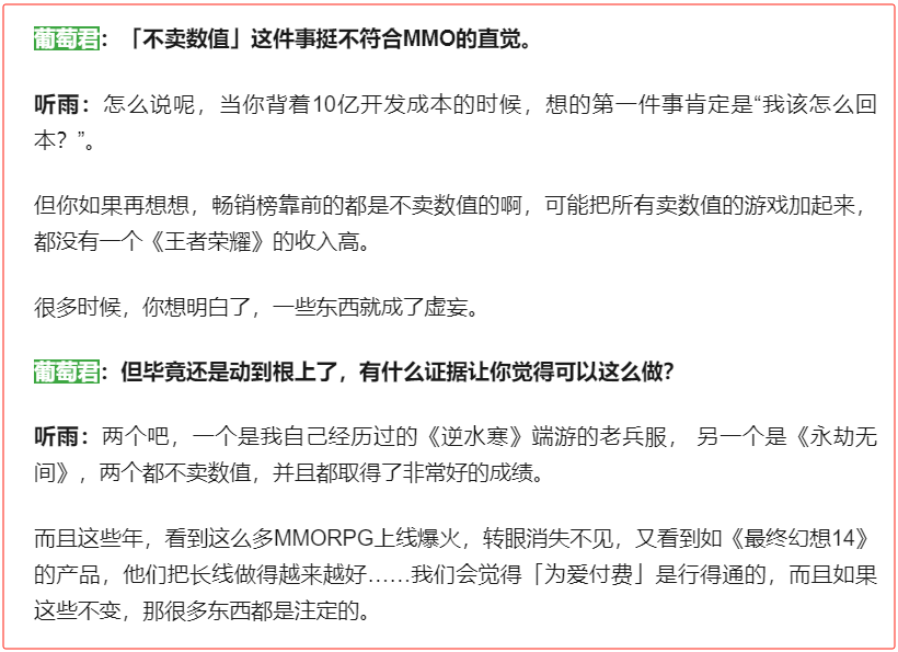 这个时候,《逆水寒》哥俩已经通过“你追我赶”,大幅度提升了MMO游戏品类的玩法内容要求,将墨守陈规的同行们远远的甩在了身后。而他们所树立起来的新行业标准又如此之高,让AI、赛季制和良心运营成为了“标配”。