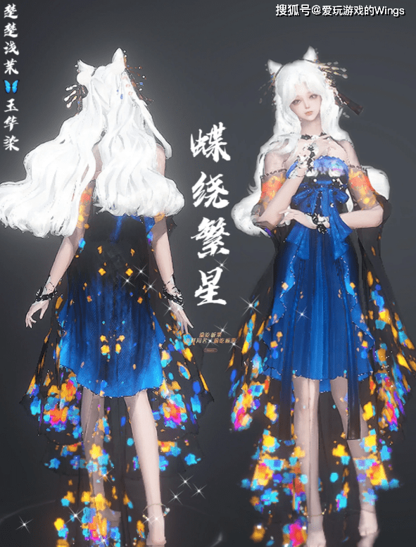 譬如下面这位玩家,就将楚楚浅茉染出了梦幻的撞色搭配!主体采用黑色+深蓝,模拟出了无边夜色,而裙摆的碎花则是被巧妙的染成了星星点点的星空......别说,多看两眼,小编还品出了梵高的《星空》同款配色感~论审美这块,咱就服逆水寒手游玩家!
