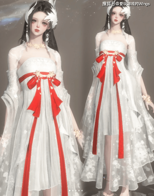 还有玩家则是选择了最经典的红白配色,让原本粉色系的楚楚浅茉,多了几分遗世独立的仙气......搭配上游戏内免费赠送的羽毛头饰,更是多了几分淡然之美.....果然,玩家们说“染色就得等销冠出手”是有道理的~这搁谁看了不迷糊!
