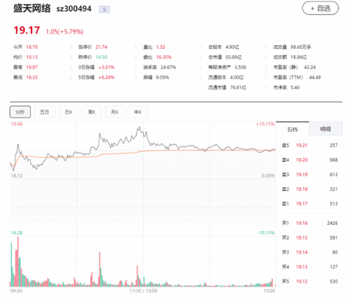 值得一提的是,盛天网络今天股价大涨5.79%(盘中涨幅超10%),最新市值93.89亿,也就是说一天市值就涨了5.14亿元。盛天网络强调,该游戏为公司研发发行的第一款真人互动游戏产品,预计对公司业绩影响较小,建议投资者审慎判断,理性投资。此外,公司计划针对A/VR平台,将该互动游戏改编成为更具沉浸式游戏体验的优质项目。