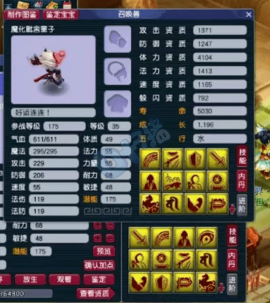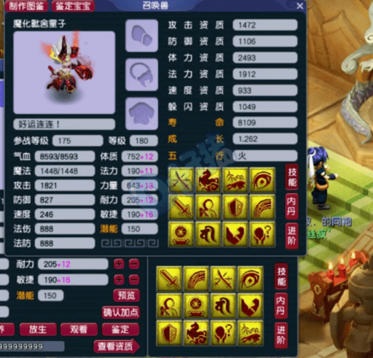 紧接着又更新了同类型的魔童,虽然这只资质比较一般,但是技能达到了翻页,带上高冥思套就是完美技能,明年吃完元宵又是一条“好汉”了。